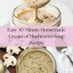 This 30-minute homemade condensed cream of mushroom soup is a rich, creamy, and flavorful base perfect for casseroles, sauces, and various dishes. Made from scratch with sautéed mushrooms, onions, garlic, and a blend of half-and-half and vegetable stock, it offers a hearty alternative to canned soups without the preservatives.