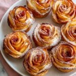 Keywords: apple roses, puff pastry dessert, easy apple pastries, cinnamon apple dessert, fruit roses, apricot glaze dessert
