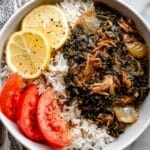 - Serve: Serve the warm molokhia stew over Lebanese rice or your preferred side. Enjoy this comforting and flavorful dish straight from the pot.