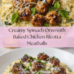 Keywords: Chicken meatballs, Ricotta meatballs, Spinach orzo, Baked meatballs, Creamy orzo, Italian dinner, Comfort food