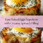 Baked Eggs Napoleon is an elegant and easy brunch recipe featuring buttery puff pastry shells filled with a creamy spinach mixture, topped with a perfectly baked egg. The pastry’s golden edges combined with luscious spinach filling and rich eggs create a sophisticated dish that’s both flavorful and comforting.
