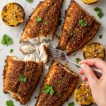This Baked Red Snapper Fish recipe offers a flavorful and easy-to-make dish featuring tender red snapper fillets seasoned with Creole spices, garlic, lemon, and olive oil. Baked to perfection and finished under the broiler for a golden crust, it’s a perfect healthy dinner option that combines bold flavors with simple preparation.