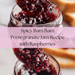 Bam Bam Pomegranate Jam is a flavorful and spicy homemade jam combining the tartness of fresh pomegranate juice and mashed raspberries with a kick from chili powder and flakes. Sweetened with sugar and thickened with low sugar Sure-Jell, this jam is perfect for adding a vibrant, zesty twist to your toast, desserts, or cheese boards.