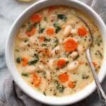 Keywords: bean soup, cannellini beans, garlic, lemon, vegetarian soup, healthy soup, Mediterranean soup, slow cooker soup, instant pot soup