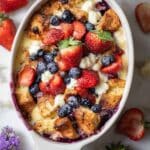 This Berry Brioche Cream Cheese French Toast Bake is an indulgent and comforting breakfast casserole featuring soft brioche bread, tangy cream cheese, fresh strawberries and blueberries soaked in a rich egg custard. Baked to golden perfection, it’s the perfect make-ahead dish for a weekend brunch or holiday morning, delivering a delightful blend of creamy, fruity, and cinnamon-spiced flavors with every bite.