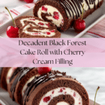 Keywords: Black Forest Cake Roll, chocolate roll cake, cherry cream filling, chocolate sponge cake, rolled cake, dessert roll