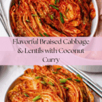 Keywords: braised cabbage, lentils, red curry, coconut milk, vegan, healthy dinner, napa cabbage, one pot meal, plant-based