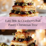 This Brie & Cranberry Puff Pastry Tree is a stunning and festive appetizer perfect for holiday gatherings. Layers of flaky puff pastry are filled with creamy brie cheese, tangy whole berry cranberry sauce, and crunchy chopped pistachios, then baked to golden perfection. Finished with fresh herb garnishes and an optional drizzle of honey, this easy-to-assemble, visually striking dish delights guests with its combination of sweet, savory, and nutty flavors.