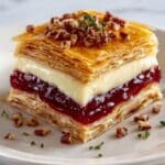 - Spread the filling: On one long edge of the stacked filo, spread a line of cranberry compote, leaving a small border to avoid spills.