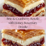 This Brie & Cranberry Rotolo combines creamy brie, tangy cranberry, and crunchy pistachios wrapped in crisp filo pastry. Finished with a fragrant rosemary honey drizzle, it’s a perfect appetizer or festive treat that impresses with minimal effort.