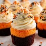 Brownie Cupcakes with Orange Cake Batter and Halloween Sprinkles Recipe