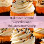 These Brownie Cupcakes are a delightful Halloween treat combining rich, fudgy brownie bottoms with fluffy orange-colored white cake tops. Topped with a creamy buttercream frosting and festive Halloween sprinkles, they offer a perfect balance of textures and flavors that’s sure to impress at any party or seasonal celebration.