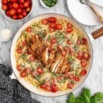 Keywords: bruschetta chicken pasta, Italian pasta recipe, chicken angel hair pasta, easy dinner recipes, fresh tomato pasta