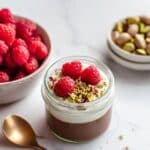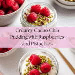 - Add Toppings and Serve: Before serving, top your cacao chia pudding with a dollop of dairy-free soy yogurt, fresh raspberries, and chopped pistachios for added texture and flavor. Enjoy immediately!