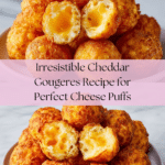 Cheddar Gougeres are delicate French cheese puffs with a crispy exterior and a light, airy interior. Made with sharp cheddar and a simple choux pastry, they make a perfect savory snack or appetizer for any occasion.