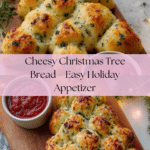 This Cheesy Christmas Tree Bread is a festive and fun appetizer that’s perfect for holiday gatherings. Soft dough pockets stuffed with a flavorful cheese mixture come together in the shape of a charming Christmas tree. Served warm with marinara sauce, it’s sure to be a crowd-pleaser.