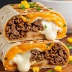 This Cheesy Grilled Cheese Burrito is a delicious fusion of comforting grilled cheese and a hearty burrito, stuffed with melted cheese, savory protein, and sautéed vegetables. Crispy and golden on the outside with a gooey, flavorful filling, it’s a quick and satisfying meal perfect for any time of day.