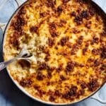 - Step 5: Place the pan under the broiler and broil until the cheddar is browned and bubbly, about 5 minutes. Serve warm or at room temperature, optionally garnished with red chili flakes and chopped parsley.