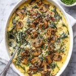 This Cheesy Mushroom Ravioli Casserole with Spinach combines tender fresh ravioli with a creamy garlic parmesan sauce, sautéed mushrooms, and vibrant spinach. Baked to perfection with layers of melted cheese and seasoned with black and red chili pepper flakes, it’s a comforting and flavorful vegetarian meal perfect for weeknight dinners or gatherings.