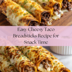 Cheesy Taco Breadsticks Delight combines the bold flavors of seasoned ground beef and melty cheese wrapped in soft pizza dough. This easy-to-make snack is perfect for game days, parties, or a fun family dinner.