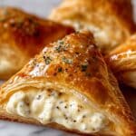 Chicken Alfredo Calzones combine the creamy richness of classic Alfredo sauce with tender chicken and melted cheeses, all wrapped in a crispy golden crust. This easy-to-make dish is perfect for a comforting dinner or a fun weekend treat.