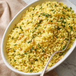 Keywords: Chicken flavored rice, savory rice, orzo rice recipe, easy side dish, chicken broth rice, buttery rice, one pot rice