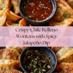 These Chile Relleno Wontons combine the classic flavors of roasted green chiles and Monterey Jack cheese wrapped in crispy wonton skins, fried to golden perfection. Served with a zesty jalapeño soy sauce, they make a perfect appetizer or snack with a spicy, savory kick.
