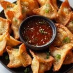 Store any leftover wontons in an airtight container in the refrigerator for up to 2 days. To reheat, bake them in a preheated oven at 350°F (175°C) for about 5–7 minutes to restore crispiness. The dipping sauce can be kept refrigerated for up to a week.