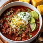 - Adjust Seasoning and Serve: Taste the chili and adjust the seasoning as needed. Serve hot and garnish with your favorite toppings like shredded cheese, sour cream, or chopped green onions.