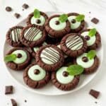 Delightfully rich and tender Chocolate Mint Thumbprint Cookies featuring a soft cocoa-flavored dough with a creamy peppermint filling and a drizzled semi-sweet chocolate finish. Perfectly balanced with a hint of refreshing mint and a melt-in-your-mouth texture, these cookies are an excellent treat for holidays or any special occasion.