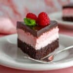 This decadent Chocolate Raspberry Mousse Cake features a rich brownie base topped with a light and airy raspberry mousse, all covered in a smooth chocolate ganache glaze. Perfect for special occasions, it combines intense chocolate flavor with fresh, tart raspberries for a delightful treat.