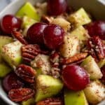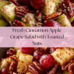 This Cinnamon Apple Grape Salad is a fresh, crunchy, and naturally sweetened fruit salad featuring diced apples, halved red grapes, and toasted pecans or walnuts. Tossed in a fragrant cinnamon-honey dressing with a hint of lemon, it is a perfect light and refreshing snack or side dish that can be served immediately or chilled for later enjoyment.