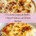 Keywords: potatoes au gratin, Ruth’s Chris copycat, cheesy potatoes, creamy potato casserole, comfort food side dish