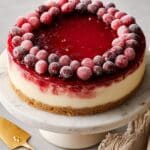 Keywords: cranberry cheesecake, cranberry dessert, holiday cheesecake, creamy cheesecake, water bath cheesecake, graham cracker crust