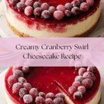 This Cranberry Cheesecake features a buttery graham cracker crust, a creamy smooth cream cheese filling swirled with tangy cranberry topping made from fresh or frozen cranberries. Baked in a water bath for a perfectly set texture and chilled overnight, it is a festive and elegant dessert perfect for holiday celebrations or any special occasion.