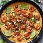This creamy shrimp and corn skillet dish combines tender, chili-spiced shrimp with a smoky, cheesy creamed corn base. Ready in just 30 minutes, it is made in one pan and features a luscious sauce of half-and-half and feta cheese, brightened with fresh lime juice and cilantro. Perfect for a quick, flavorful dinner with a touch of smoky spice and fresh zest.