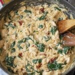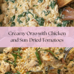 This creamy orzo with chicken is a comforting and flavorful one-pan meal perfect for busy weeknights. Tender chicken pieces and sun-dried tomatoes blend beautifully with creamy orzo and fresh spinach for a hearty dish everyone will love.