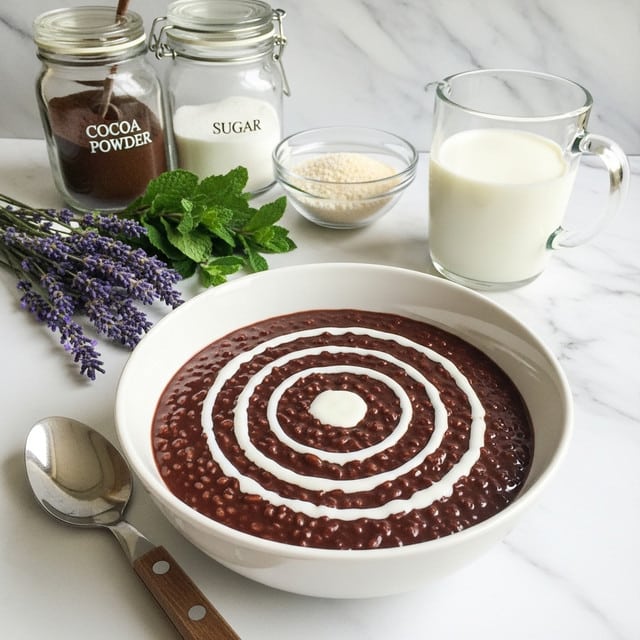 Champorado is a traditional Filipino sweet chocolate rice porridge made with glutinous rice and cocoa powder, simmered to a thick, creamy consistency and served warm with a topping of evaporated milk. This comforting breakfast or snack is rich, velvety, and perfect for cozy moments.
