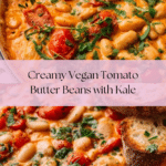 This creamy tomato butter beans recipe is a flavorful, comforting dish that combines tender butter beans with a rich tomato-based sauce, infused with garlic, herbs, and a touch of smoky paprika. Enhanced with kale and vegan cream cheese, it makes a hearty and wholesome meal perfect for serving with crusty rustic bread. Ideal for a cozy lunch or dinner, it highlights vibrant Mediterranean-inspired flavors and is both vegan and gluten-free when paired with appropriate bread.