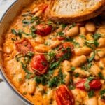 This creamy tomato butter beans recipe is a flavorful, comforting dish that combines tender butter beans with a rich tomato-based sauce, infused with garlic, herbs, and a touch of smoky paprika. Enhanced with kale and vegan cream cheese, it makes a hearty and wholesome meal perfect for serving with crusty rustic bread. Ideal for a cozy lunch or dinner, it highlights vibrant Mediterranean-inspired flavors and is both vegan and gluten-free when paired with appropriate bread.