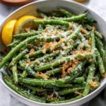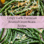 Keywords: roasted green beans, garlic parmesan green beans, crispy green beans, healthy side dish, vegetarian side, easy vegetable recipe