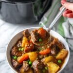 A hearty and comforting Crockpot Beef Stew made with tender chunks of beef, Yukon potatoes, carrots, and sweet peas, slow-cooked to perfection in a flavorful broth seasoned with garlic, black pepper, beef bouillon, and Worcestershire sauce. Perfect for an easy, warming meal.