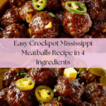 These Crockpot Mississippi Meatballs are a flavorful and effortless appetizer or main dish. With a tangy mix of ranch, au jus, and pepperoncini peppers, they’re perfect for gatherings or a cozy meal. Simply toss everything into your slow cooker and let the magic happen.