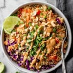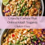 Keywords: Quinoa salad, Thai salad, Vegan salad, Gluten-free recipe, Cashew salad, Healthy lunch, Peanut dressing, Crunchy salad