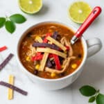 - Serve: Remove the soup from heat. Ladle into bowls and garnish each serving with crispy tortilla strips and freshly chopped cilantro for added texture and freshness.