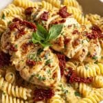 This Dairy Free Marry Me Chicken Pasta features tender chicken breasts simmered in a creamy coconut milk and sun-dried tomato sauce, served over gluten-free pasta. It’s a flavorful, dairy-free twist on the popular creamy chicken pasta with a hint of spice and fresh basil garnish, perfect for a comforting yet healthy meal.