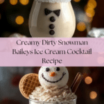 The Dirty Snowman Baileys Ice Cream Cocktail is a cozy, indulgent drink that combines creamy vanilla ice cream, rich Baileys Irish Cream, and warm hot chocolate, topped with whipped cream and festive sprinkles. Perfect for winter evenings or holiday gatherings, this cocktail is both comforting and delightfully boozy.