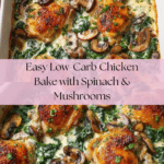This easy 40-minute chicken, spinach, and mushroom bake is a comforting low-carb meal that’s packed with flavor. Creamy, cheesy, and satisfying, it’s perfect for a quick weeknight dinner that the whole family will enjoy.