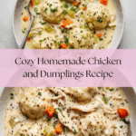 This comforting and hearty Easy Chicken and Dumplings recipe features tender shredded chicken simmered in a creamy vegetable-rich broth with fluffy homemade dumplings. A classic Southern-inspired dish, it combines fragrant aromatics, fresh herbs, and simple pantry staples for a warm, satisfying meal perfect for chilly days or family dinners.