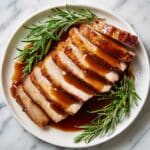 - Remove Netting and Rest: Carefully cut and remove the netting with kitchen shears. Let the turkey rest while preparing the sauce to retain juices and ensure moistness.